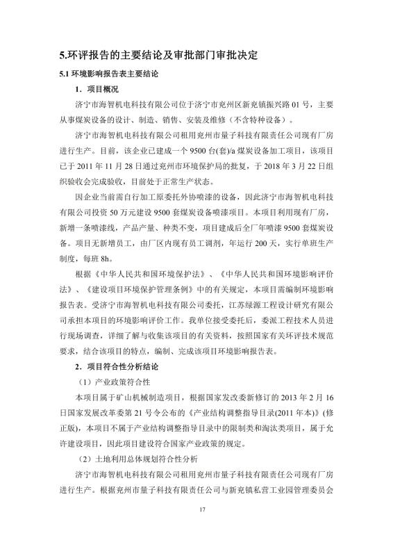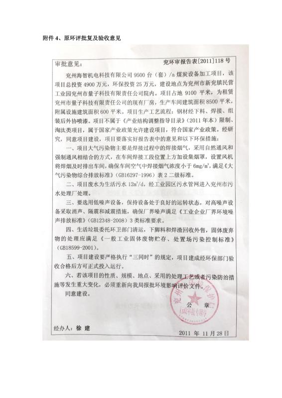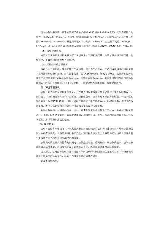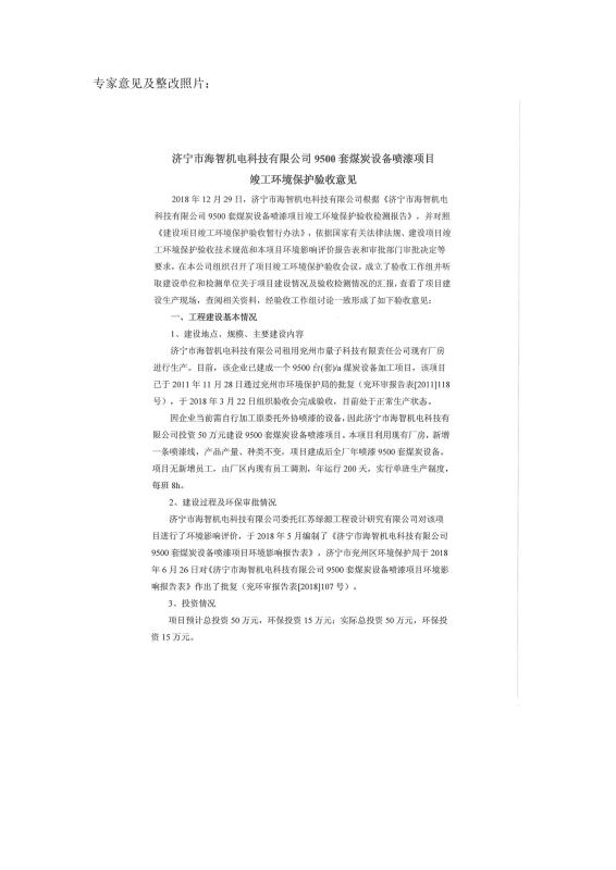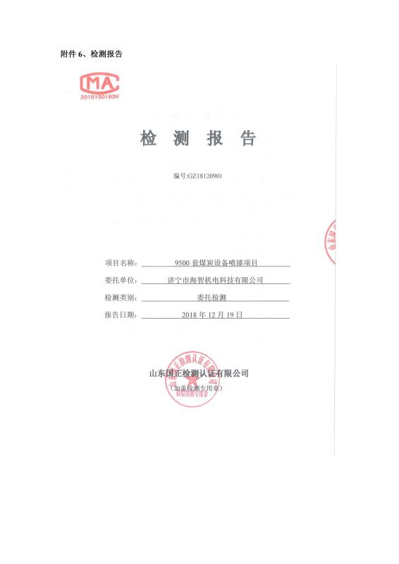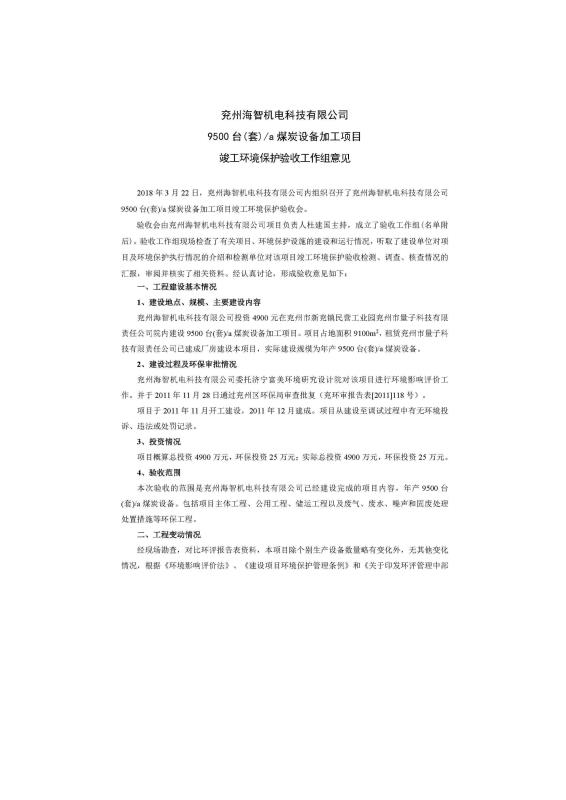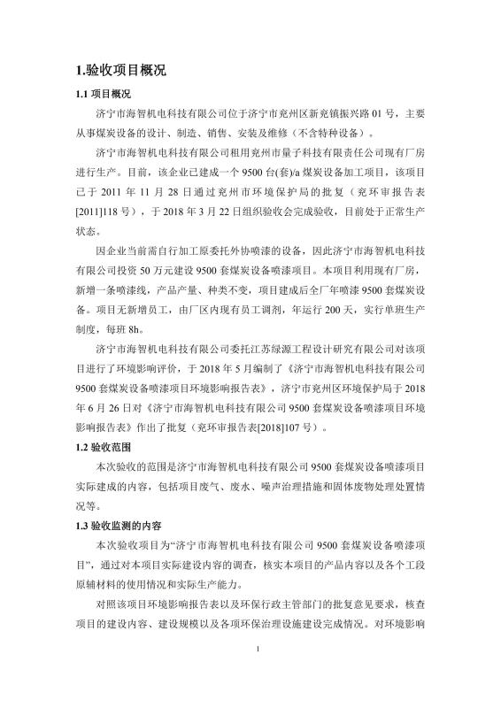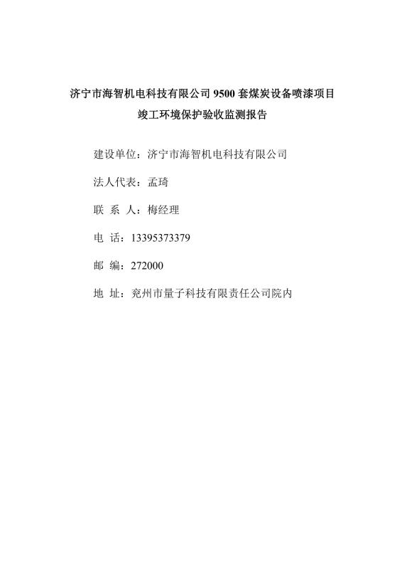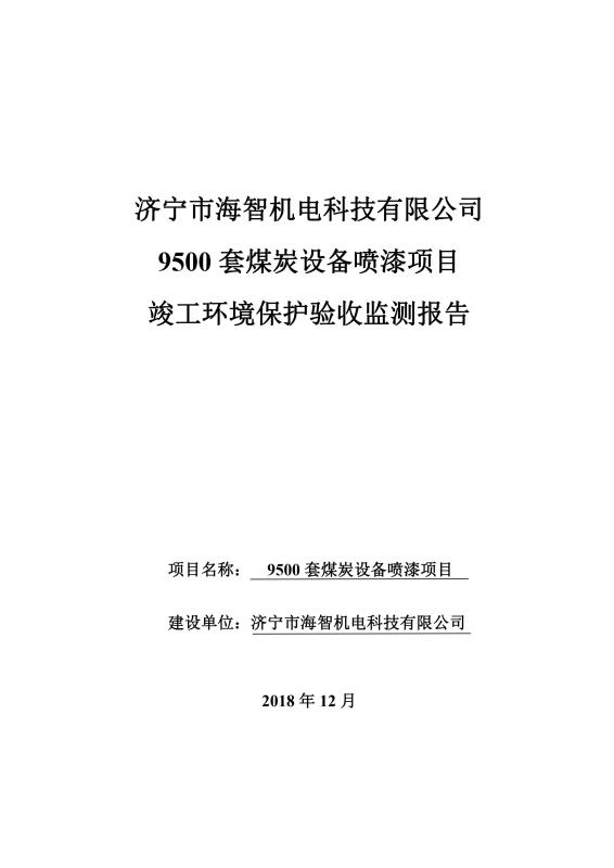 > 9500套煤炭設備噴漆項目竣工環境保護驗收監測報告