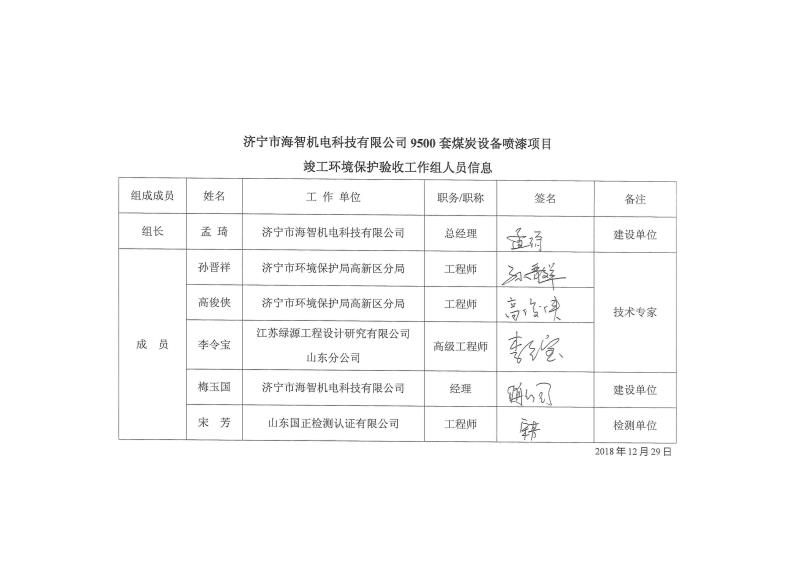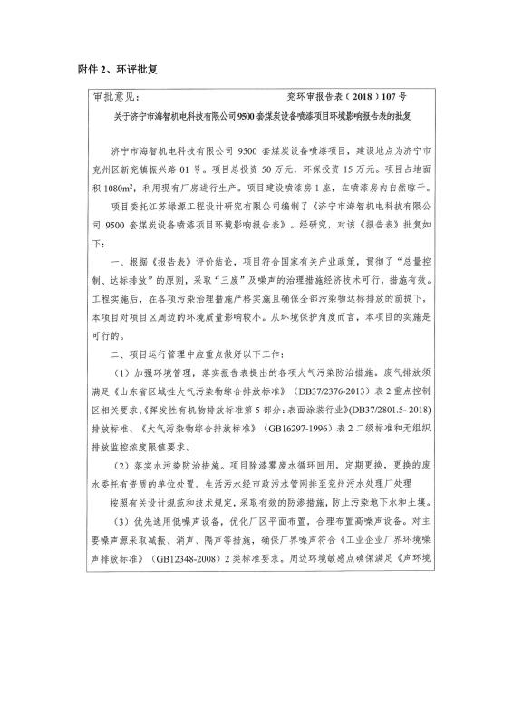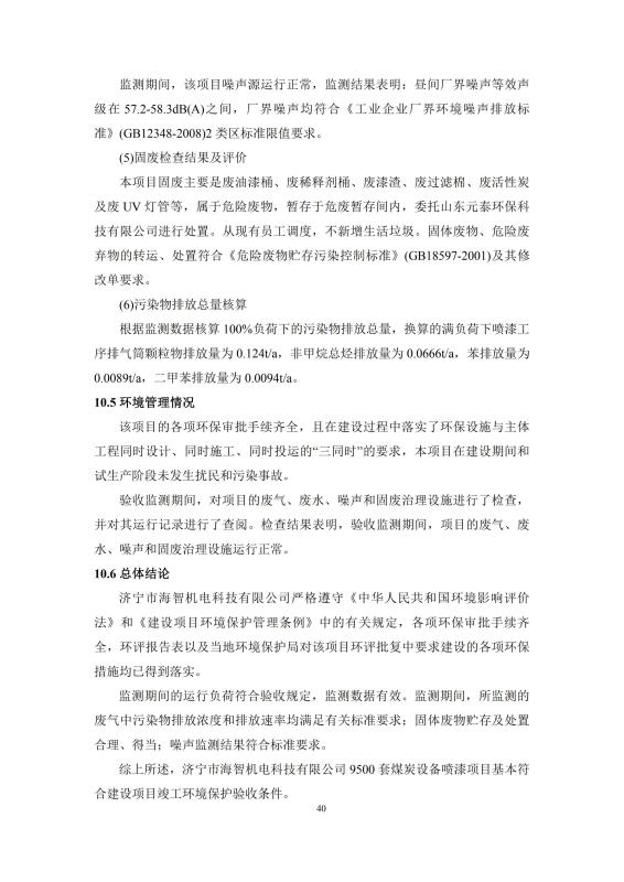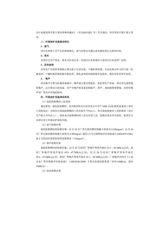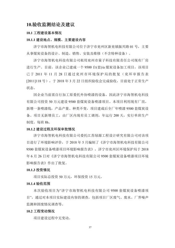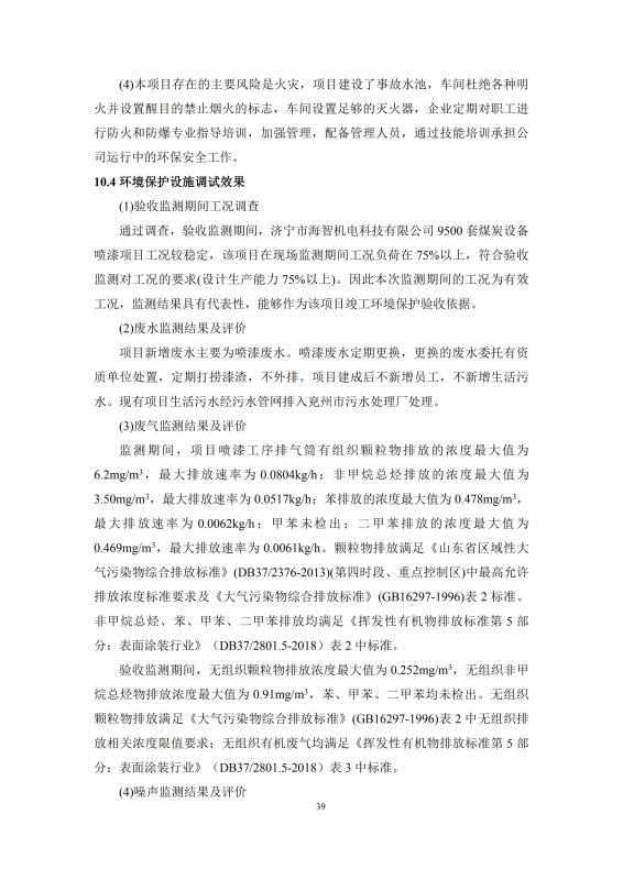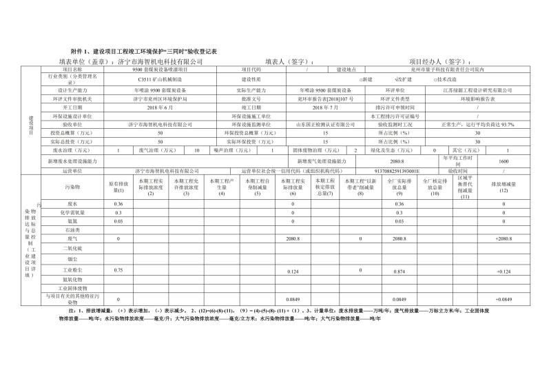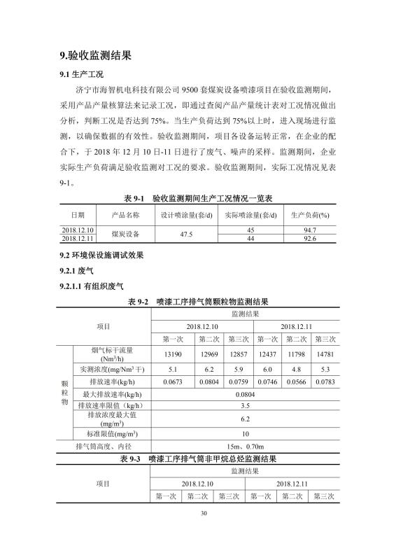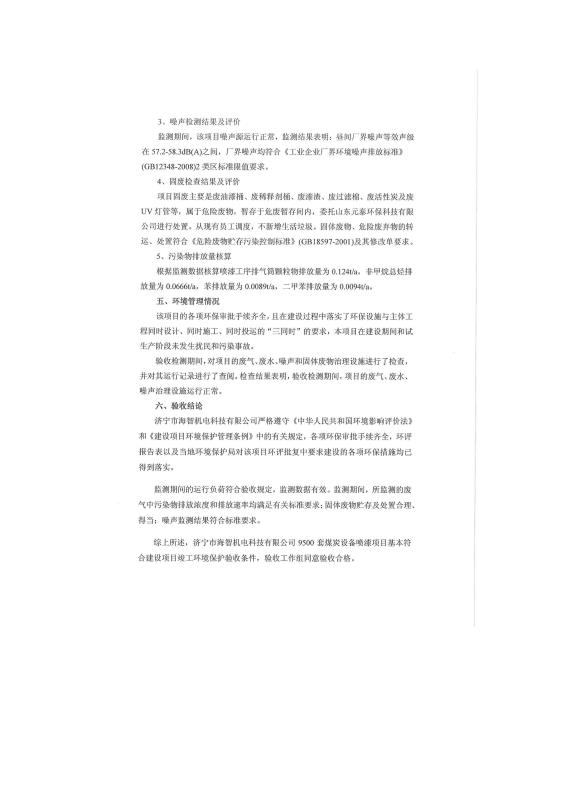 9500套煤炭設備噴漆項目竣工環境保護驗收監測報告