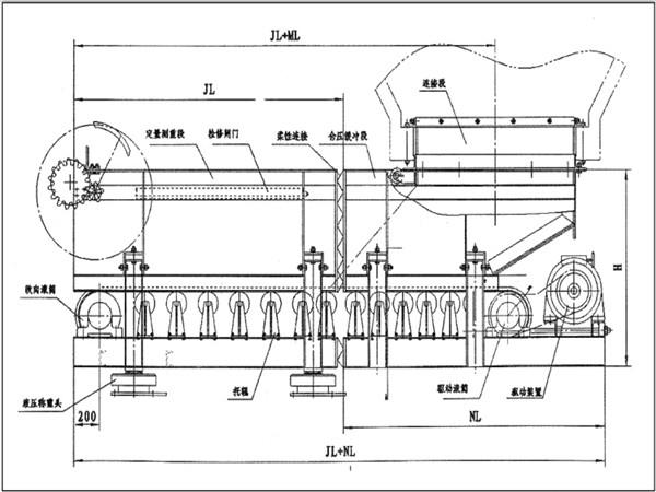 稱重計(jì)量給料機(jī)設(shè)備分為倉(cāng)壓緩沖段及定量測(cè)重段兩段,而兩端中間采用柔性件進(jìn)行連接。稱重計(jì)量給料機(jī)的倉(cāng)壓緩沖段和地基固定在一起,以此來(lái)承受倉(cāng)壓。而定量測(cè)重段的豎直方向一直處于浮動(dòng)狀態(tài),全部重量都?jí)涸谒膫€(gè)液壓稱重頭上,以此來(lái)達(dá)到恒定給料的目的。稱重計(jì)量給料機(jī)具有性能平穩(wěn)可靠、噪音小、經(jīng)久耐用等特點(diǎn)。
