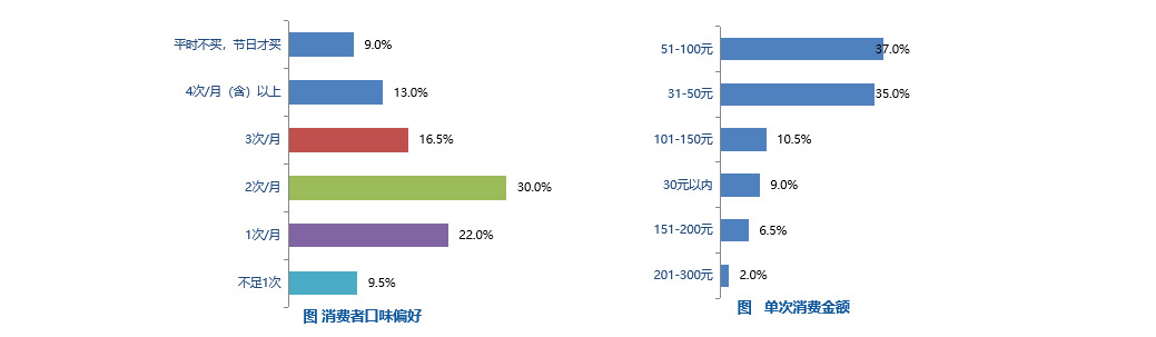 研究發(fā)現(xiàn)6:每月購買2次、單次消費(fèi)31-100元是主流消費(fèi)習(xí)慣