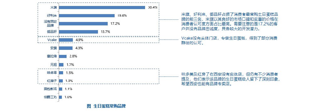 研究發(fā)現1:米旗/好利來/御品軒等生日蛋糕受市場認可度高