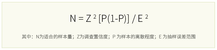 樣本量確定公式:在充分考慮所有統(tǒng)計(jì)因素基礎(chǔ)上,蘭德趨勢(shì)通常采用的簡(jiǎn)單隨機(jī)抽樣(特別是估計(jì)平均值時(shí))的公式為:
