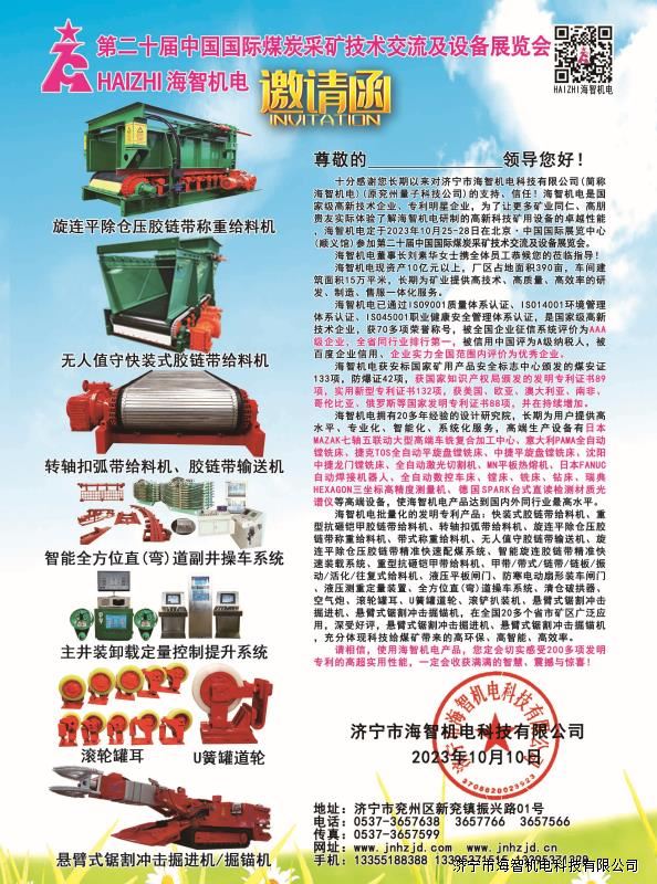 > 邀請函-第二十屆中國國際煤炭采礦技術交流及設備展覽會2023.10.25-28